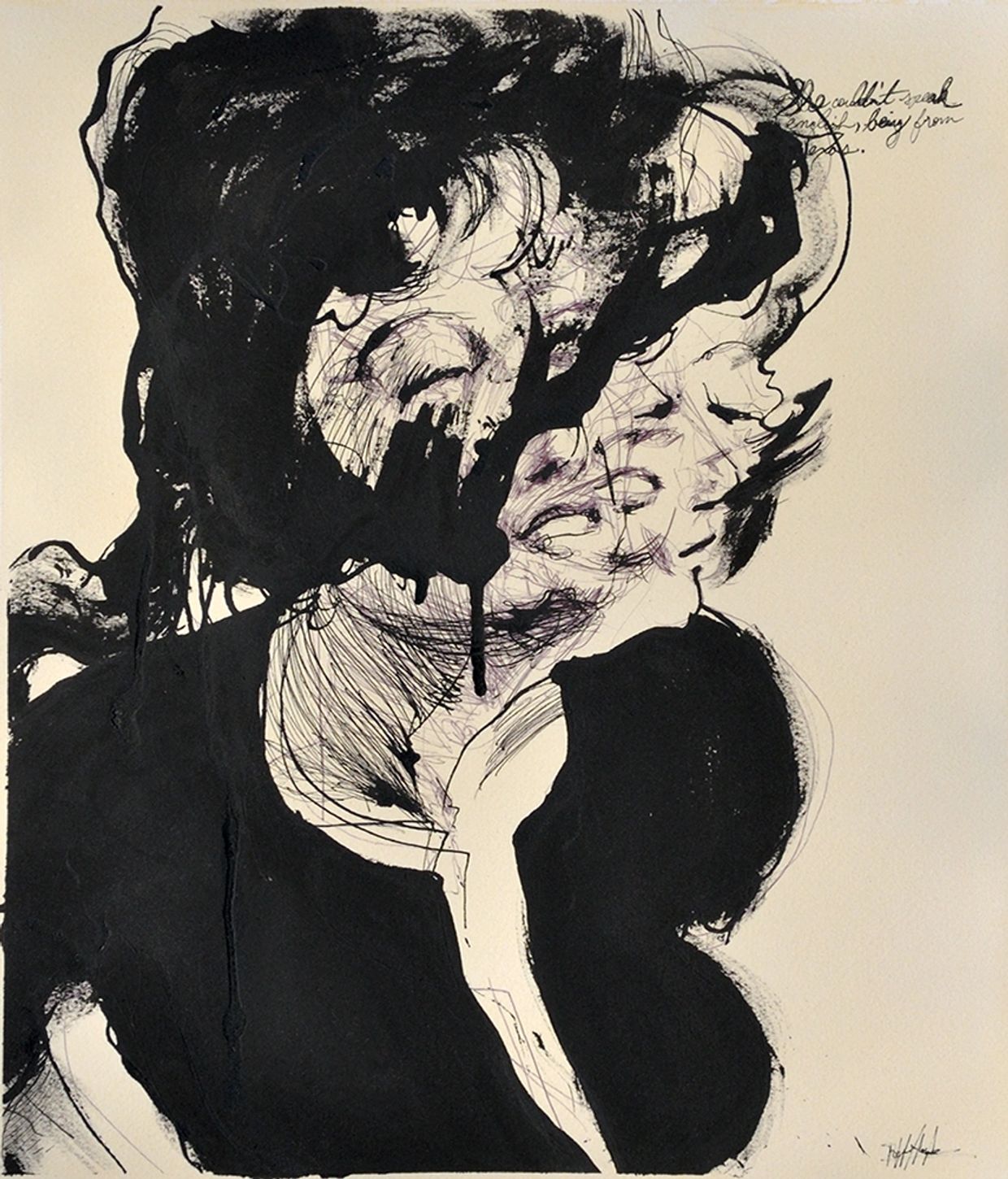 They're juicy bits, too: "I DON'T WANT THEIR RESPECT. I WOULDN'T KNOW WHAT TO DO WITH IT" on a male face that looks like one powerful grumpus; "I'M NOT A HORSE THAT'S JUST THE WAY I COMB MY HAIR" on another; and my favorite, which is in cursive and barely legible, so you have to work for it: "She couldn't speak english, being from Texas."