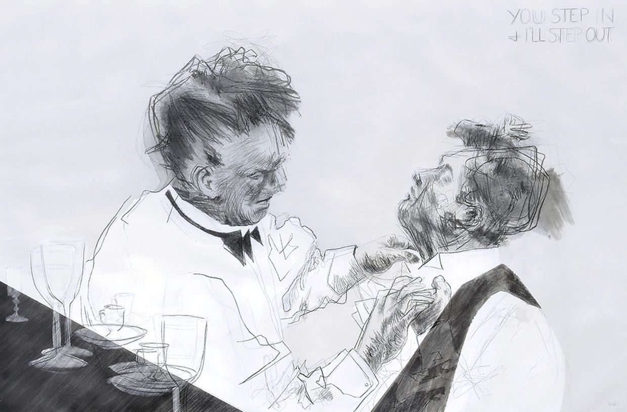 "I tend to use a lot of self-deprecating humor and ambiguity to make fun of my own viewers and myself. The men and women are meant to be everyone and anyone. Hands, settings, text and faces are all taken out of context and recombined through a series of studies."